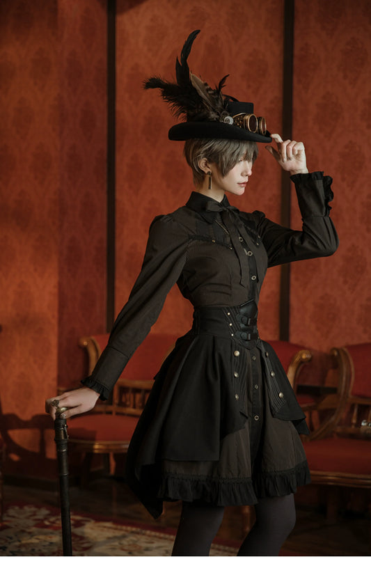 (BFM)Mr. Yi's Steam Continent~Gothic Lolita Skirt Black High-Waisted Leather Waistband Skirt